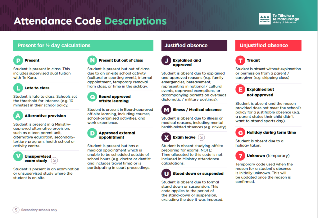 Please note: COVID is now coded as a regular medical absence. We appreciate that whanau will be observing isolation but COVID is no longer coded differently. The rule of thumb is if you are too sick to attend school, please stay home.